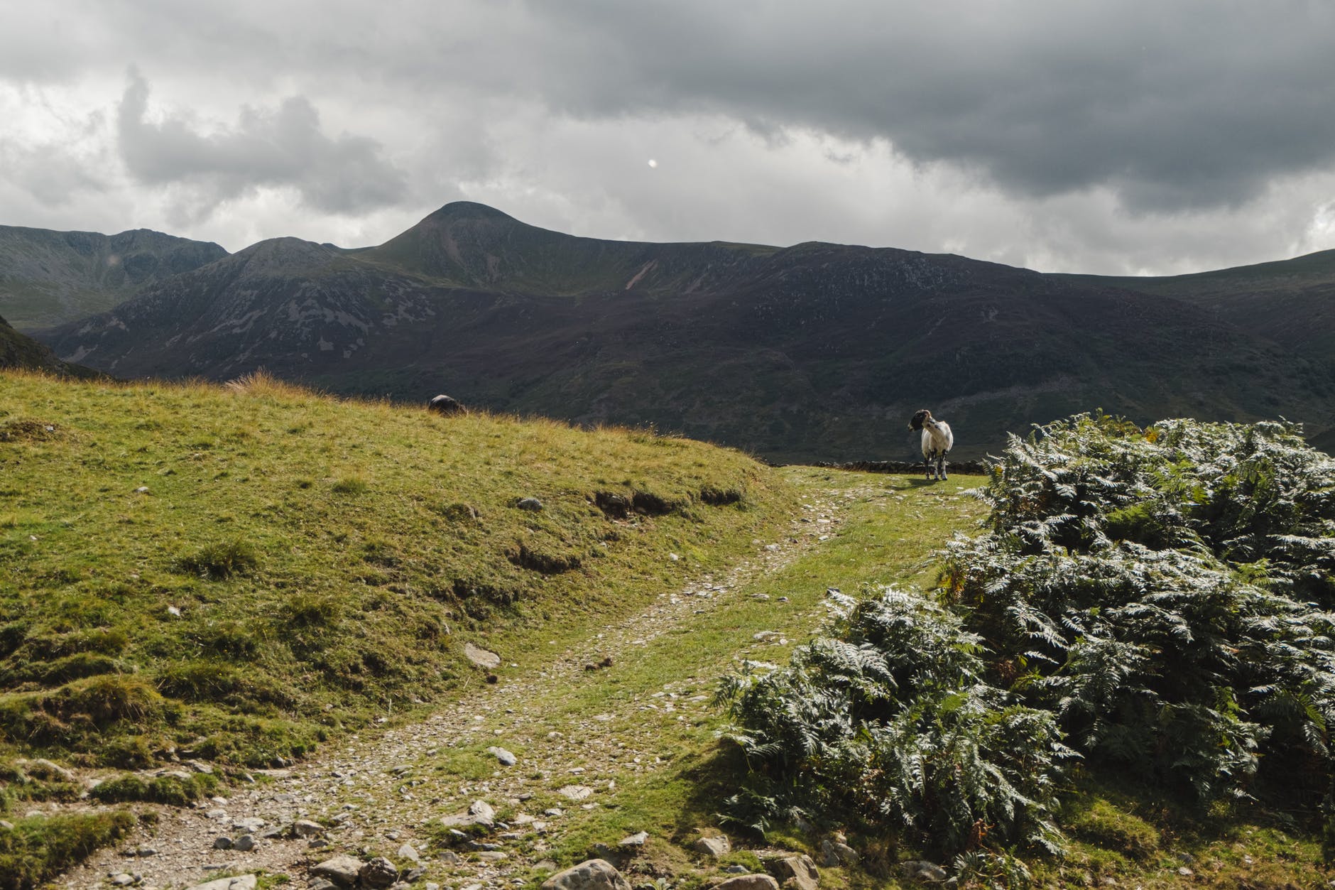 grassy meadow against hilly area